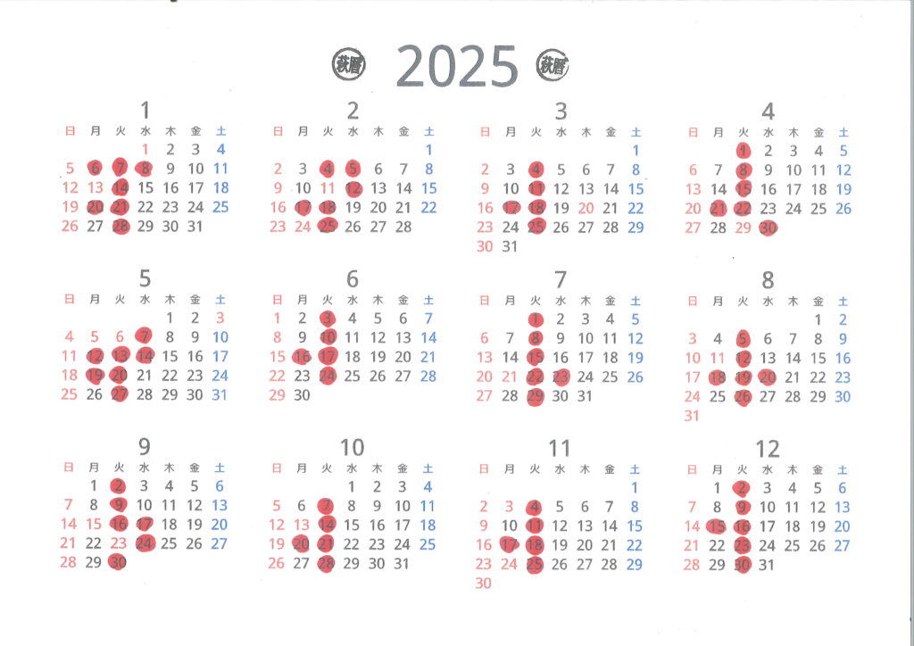 レストラン萩暦のお休み